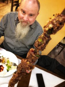lecker wars im restaurant san antonio. die xxl–fleischspiesse vom lagerfeuer sind nicht für das auge ein genuss.