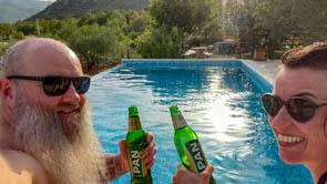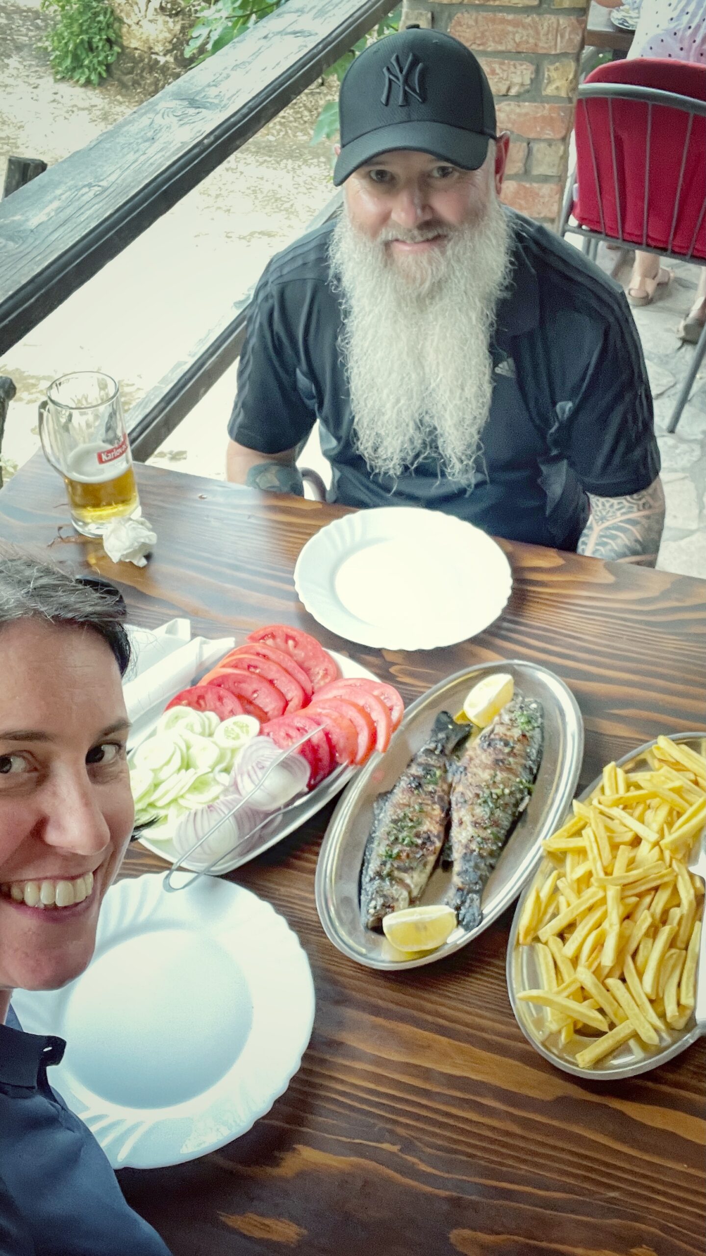 überraschte uns zwar, aber die ganze aufregung war nach dem abendessen direkt am fluss mit einer forelle (pastrva sa zara) und einem bierchen für rund 15€ gleich wieder vergessen.