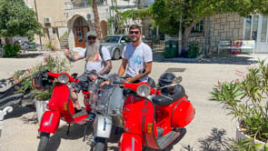 dort kaum die vespa geparkt, wurden der vorbeifahrende vespafahrer Ivan auf uns aufmerksam