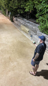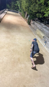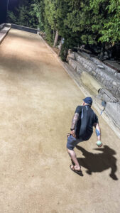 auf dem nachhauseweg konnte alex nicht unerkannt bei den boccianern vorbei gehen. so wurde aus einem “dobra večer”, zwei kleine bier, eine nette unterhaltung mit ante und seinem bruder und alex erstes boccia spiel … gleich gegen einen profi ;-).