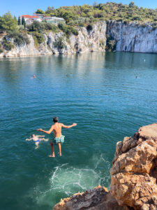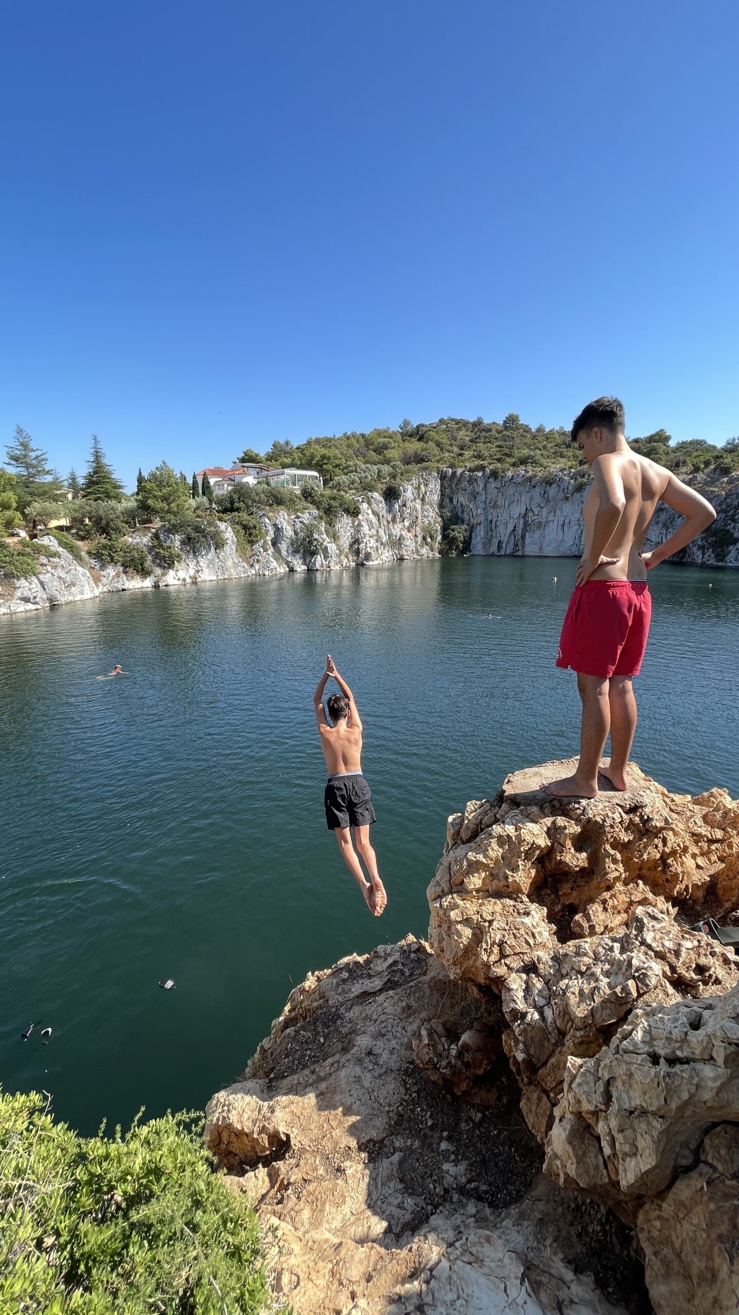 nach einer ausgezeichnete fischplatte (zubereitet mit köstlicher, fein abgestimmter harter metallica musik) waren wir gestärkt für die kleine wanderung um die bay von Rogoznica sowie zum Drachenaugensee. ein reinspringen war kurzzeitig eine option, aber immer und überall diese scheipi’s…