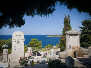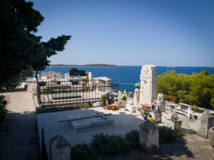 tja, wenn man selbst vor ort ist, schaut die sache gleich anders aus. die stadtwanderung ist gleich mal von dem “highlight” – dem friedhof – gekrönt. es gibt hier ein netten blick auf das meer, aber es bedarf hier keiner weiteren dokumentation, denn so extrordinär fanden wir Primosten nun auch wieder nicht.