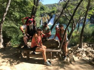 dennoch glück im unglück. ein guide verriet, dass wir in rund 30 km entfernung einen wasserfall inklusive bademöglichkeit finden können. also rauf auf die vespa bzw. rein ins auto und auf zu einem anderen teil vom nationalpark, nach Roški slap.