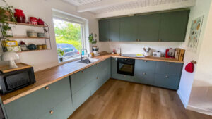 der nächste strand ist nur 3 km von unserem haus entfernt und die infrastruktur in diesem kleinen örtchen Tornby passt uns gut.