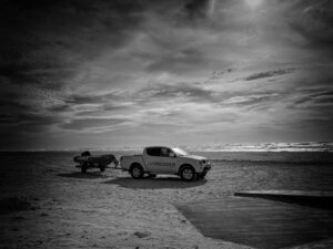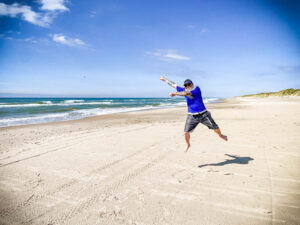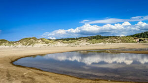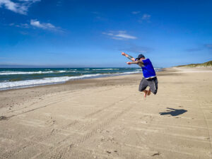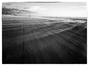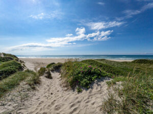 der weg führt uns über einen schotterweg und 500 m dünen-fußmarsch zu einem einsamen, seeeehr einsamen, sandstrand.