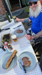 nach unserer erfrischung in der nordsee, sind wir dann in unser wohliges heim und haben gegrillt. steak und gemüse, wie es nur im urlaub schmeckt ;-),