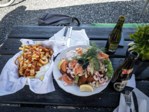 als erstes wollten wir selbstverständlich den hafen besichten, aber der war ähnlich aussichtslos wie die beiden vergangenen “highlights”, jedoch hatte der hafen ein gutes, es gab dort einen Fisk & Grill, wo wir ein recht pasables und fangfrisches mittagessen bekamen.