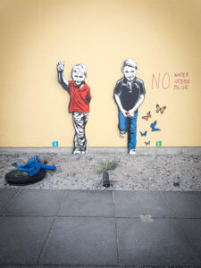 das angeblich beste einkaufscenter im norden dänemarks hat uns dann doch ein wenig enttäuscht. relativ klein, hauptsächlich mode-shops. ein rundgang durch die (alt)stadt war da schon interessanter, besonders das kunstmuseum hat es uns angetan. wir waren zwar nicht drin, aber kaffee und rhabarberkuchen waren für uns von grösserem interesse. für saftige €20,-