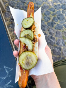 somit war es dann auch höchste zeit einen “Stor Hotdog med kydderpolse” zu essen. für die dänen selbst, steht ein hot dog regelmäßig am speiseplan https://esmark.de/hot-dog/, daher auch für uns ein muss.