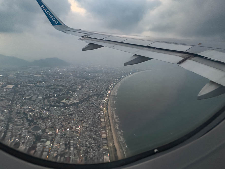 Die Fahrt mit dem Bus lässt mir genügend Zeit, um meine weitere Reise zu planen. Nach Rücksprache mit T an entscheide ich mich für eine Änderung meines ursprünglichen Plans: eigentlich hatte ich vor, noch mit dem Zug entlang der Küste in den Süden fahren, dort einen Zwischenstop in Phan Tiet einzulegen, um dann mit dem Zug weiter ins Mekong Delta zu meiner nächsten Unterkunft zu reisen. Ich musste aber feststellen, dass dieses Vorhaben nicht nur zeitaufwändig wäre, sondern auch gleich viel kostet, wie ein Flug. So buche ich noch im Bus einen Flug von Da Nang nach Saigon inklusive zwei Nächte Aufenthalt in der Großstadt.