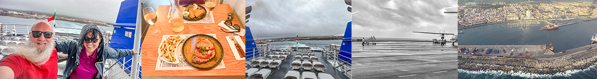Dort gab es ein Thunfischsteak, ein Rumpsteak und einen Liter trockenen Vinho Verde. Schließlich braucht man für eine Überfahrt bei starkem Wellengang sowohl etwas Festes als auch ausreichend Flüssiges im Magen. 🌊🍷