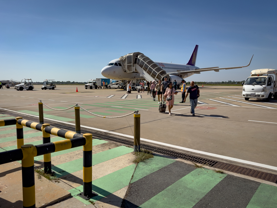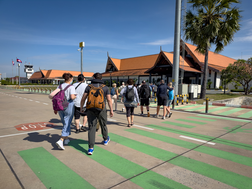 Der Flug war kurz und angenehm. Beim Ausstieg aus dem Flughafen hatte ich einen Flashback: der so genannte “internationale” Flughafen von Siem Reap war in etwa vergleichbar mit der unserer Landung auf den Cayman Isands vor ein paar Jahren. Man steigt direkt am Flugfeld aus und spaziert gemächlich zu irgendwelchen kleinen Häuschen, die letztendlich das Flughafengebäude darstellen.