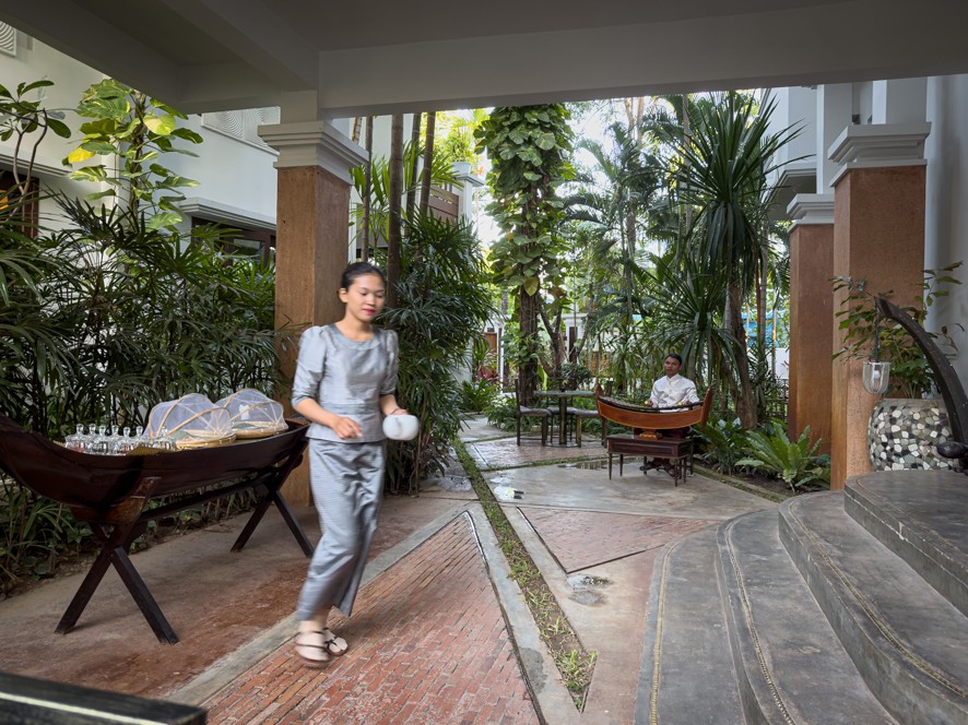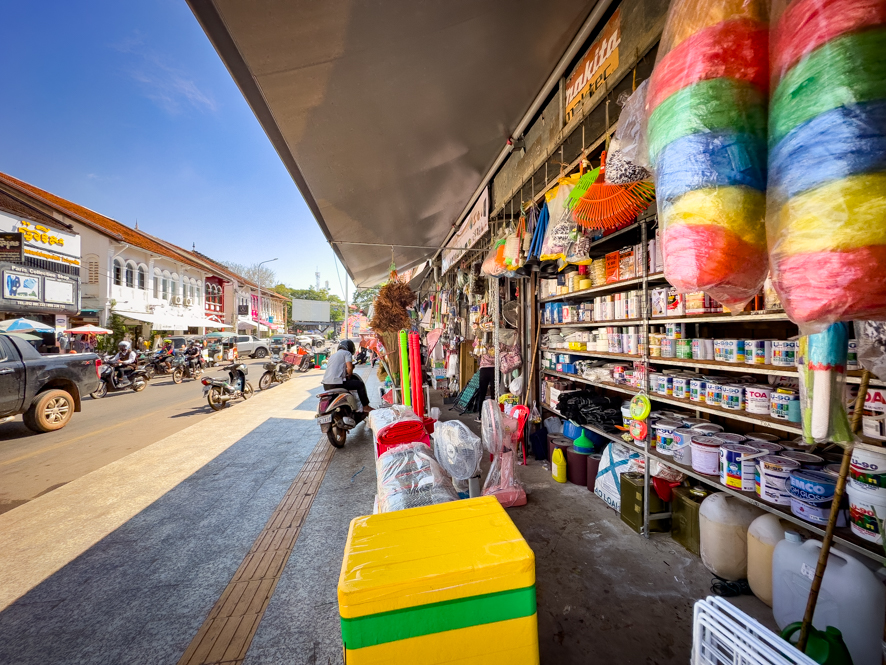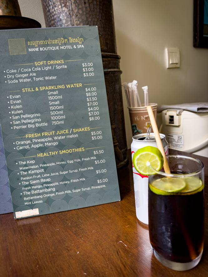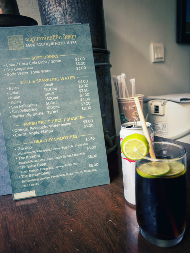 Auch das Fortbewegungsmittel Nummer eins, sowohl unter den Touristen als auch unter den Einheimischen ist hier nicht das Grab-Taxi sondern tatsächlich das Tuktuk. Was wohl in Bangkok eine teure Touristen Gaudi ist, ist hier alltäglich. Jegliche Fahrt von irgendwo ins Stadtzentrum kostet 1 US-Dollar. Meine Unterkunft, das Mane Boutique Hotel, versucht krampfhaft eine fünf Sterne Unterkunft zu repräsentieren, schafft es dann aber doch nicht ganz. Wie immer finde ich die vielen kleinen Fehler, die mich dann stören (ich will jetzt darauf nicht näher eingehen). Ein Tuktuk bringt mich ins Stadtzentrum, um mich in einem Supermarkt mit genügend Bier einzudecken.