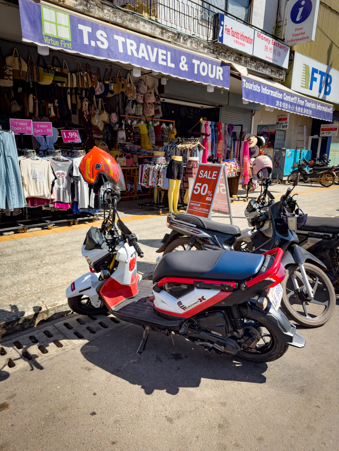 pünktlich um 8:00 Uhr steht mein Moped, ein Honda Zoomer zur Übernahme bereit. Nachdem ich das Frühstück gemütlich beendet habe, drehe ich die erste Runde mit dem Moped, was sehr viel Spaß bereitet.