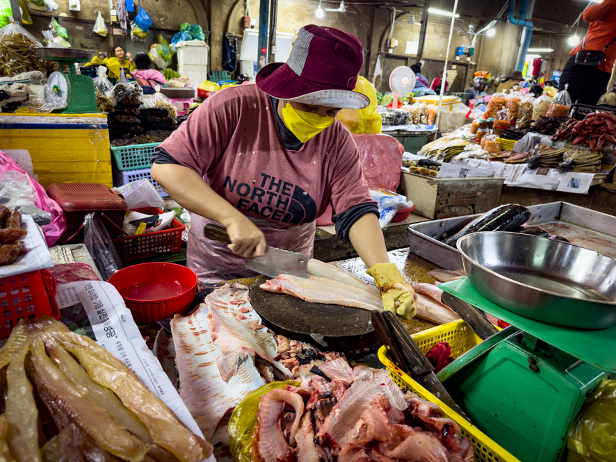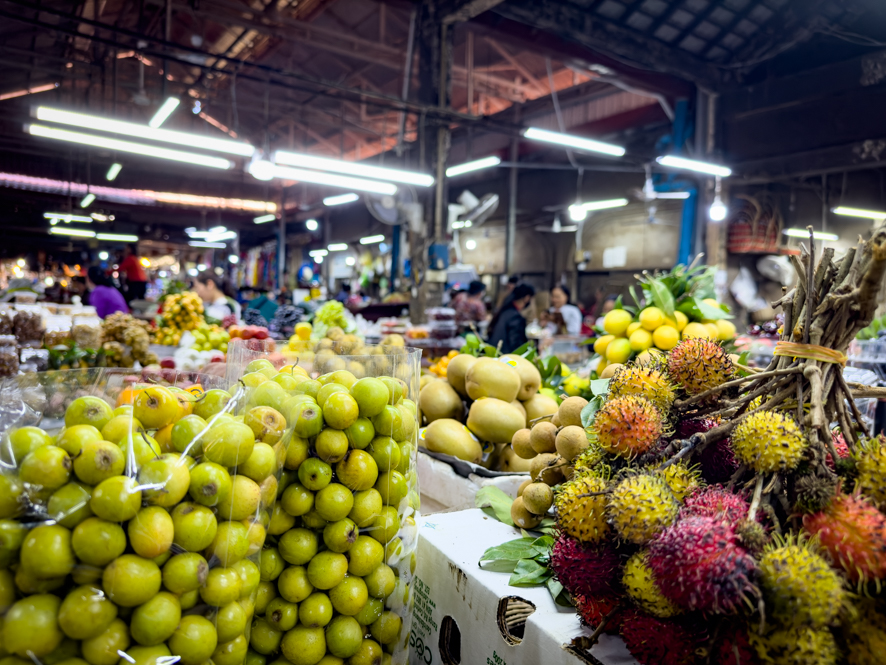 Ich fahre mal ins Stadtzentrum und sehe mir den zentralen Markt an. Dort geht es zwar zu, wie auf jedem anderen asiatischen Gemüsemarkt, dennoch ist es sehr interessant und spannend, zu sehen was und wie hier feilgeboten wird.