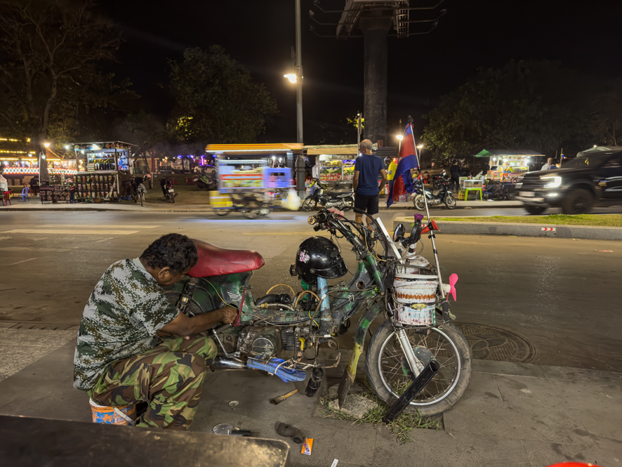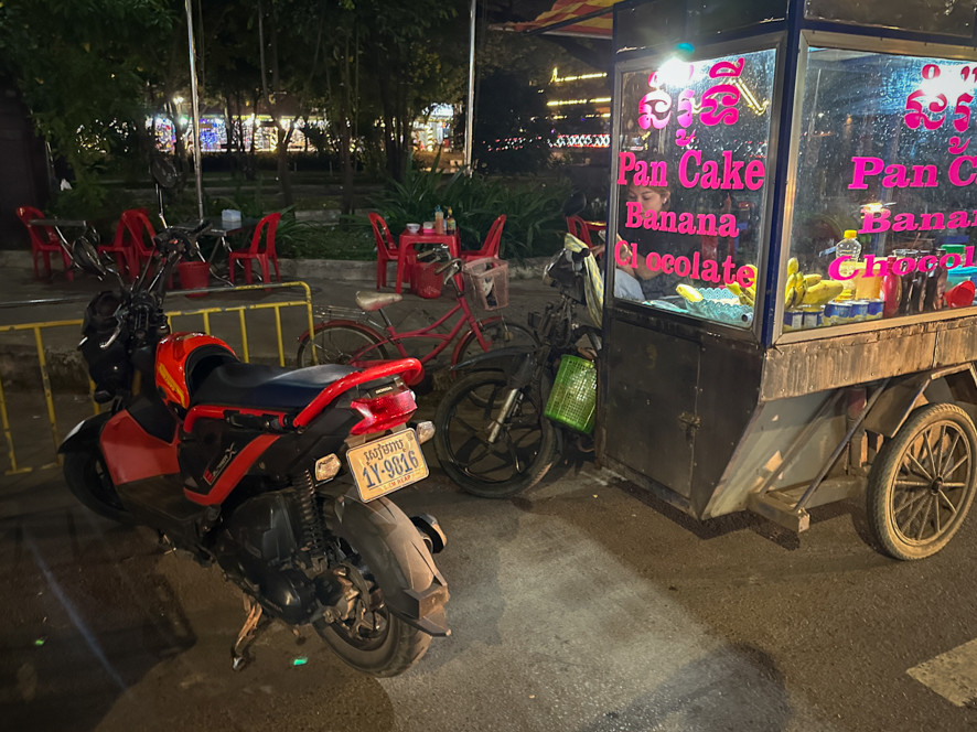 Mit dem Zoomer mache ich noch eine kurze Runde ins Zentrum, um ein letztes Mal kambodschanische Streetfood zu genießen.