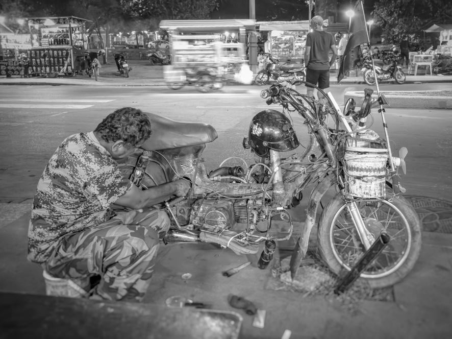Ich habe beschlossen, noch einmal ein Moped auszuleihen, um morgen, am Freitag, dem Tag meiner Weiterreise nach Thailand/Bangkok noch eine Foto Session mit Angkor wat bei Sonnenaufgang zu machen. Pünktlich um 17:00 Uhr steht dann auch wieder ein Hona Zoomer vorm Hotel Eingang. Obwohl ich einen Quick Check mache, muss ich später, als der Typ von der Vermietung wieder weg war, feststellen, dass das Licht einen Wackelkontakt hatte und auch die Hupe. Egal.