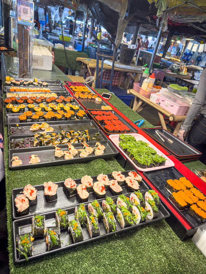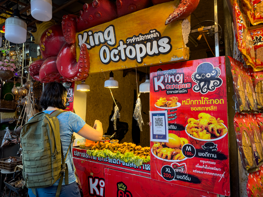 Auf dem Rückweg sind wir noch bei den Streetfood Standln ums Eck eingekehrt. Während ich mich minutenlang um ein Abendessen anstellen musste, hat Alex Bekanntschaft mit einem britischen Ehepaar gemacht, die bereits seit 14 Jahren Urlaub in Thailand machen. Sie gaben uns den Tipp, dass wir uns Krabi Town anschauen sollten, da von viel weniger von Touris heimgesucht wäre.