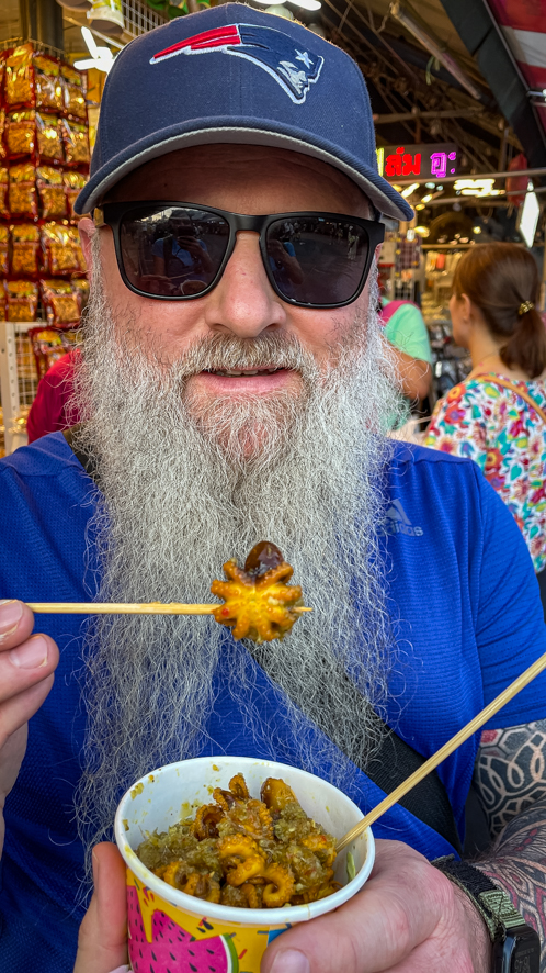 Durch dieses riesen Areal streift man hier stundenlang und wir waren von dieser Vielseitigkeit aber auch der Sturheit der Verkäufer (verhandeln war oft unmöglich) fasziniert. Nach über drei Stunden am Markt gönnten wir uns eine Food and Shoulder Massage” für je 200 Thai Baht (= rund 5 EUR für beide). In den Worten von Alex (und ich nehme ihn beim Wort): es wird nicht die letzte Massage in diesem Urlaub gewesen sein.