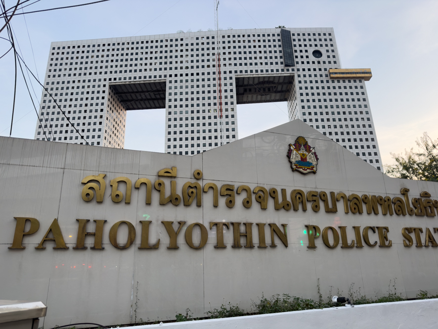 Um ein optimales Foto von dem Gebäude zu bekommen, haben wir zuerst versucht bei der gegenüberliegenden U-Bahnstation ein guten Spot zu finden. Während eine Amateurfotografin bald mal mit einem Foto zufrieden war, ist es bei einem Profi anders. In diesem Fall war es aber das Beste was uns passieren konnte. Mit einer gewissen Lässigkeit fragte Alex bei einem bewachten Lost Place (Life Sathorn @ 10) mal eben den Portier, ob wir vom Rooftop aus, das Robot Building fotografieren könnten. Mittels Googeltranslator war die Verständigung nicht allzu schwierig und wir waren im Nu mit dem Security-Mitarbeiter im 28. Stock und wir hatten hier defintiv den besten Blick auf das besagte Building.