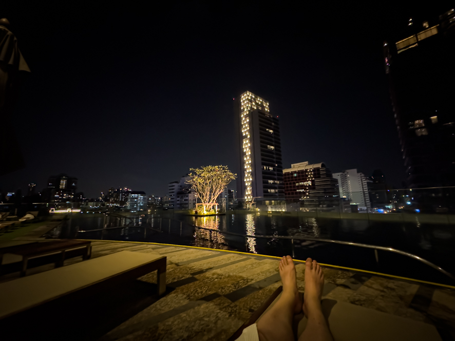 Der Abend sollte nach dieser kleinen Enttäuschung nicht zu Ende sein und so ging es in eine Skybar “ums Eck”. Im 49. Stock des Bangkok Mariott Hotels in der Octave Rooftop Lounge Bar ließen wir die Holy Night mit einem Cocktail ausklingen.