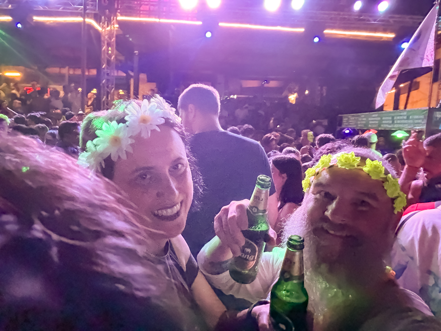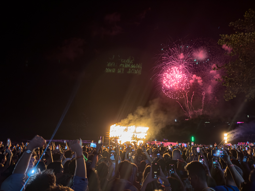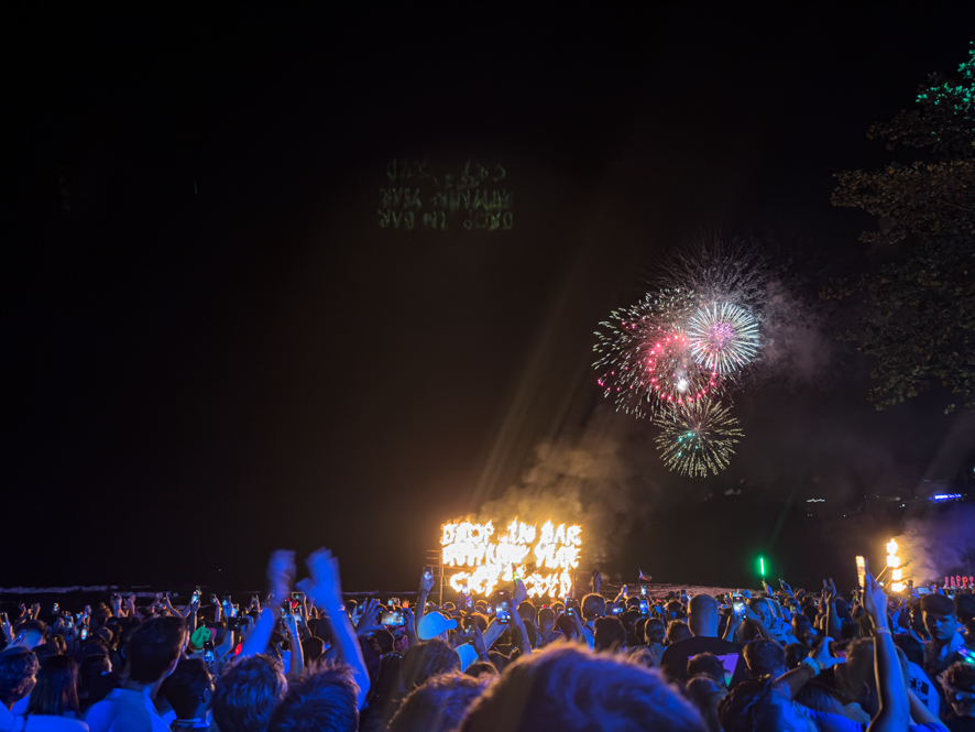 Unsere Erwartungen wurden diesmal erfüllt. Es war richtig party angesagt, 1000e Menschen dazu laute Musik und diverse Licht-/laseranlagen haben mächtig eingeheizt. Was Musik und Laser nicht schafften, haben dann Alkohol und Cannabis für die meisten Menschen dann besorgt – für uns nicht. Zumindest kein Cannabis 😉