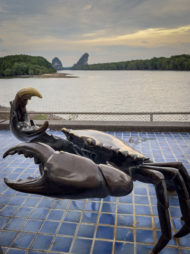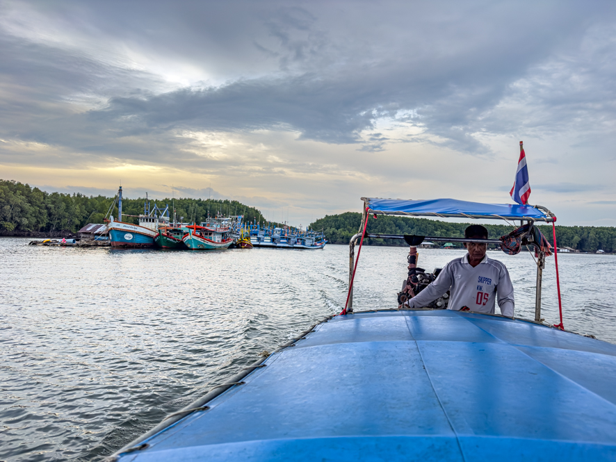 Über die Walking Street sind wird zum Fluss geschlendert und spontan wie wir sind, haben wir hier eine einstündige Long Tail Bootsfahrt gemacht. Wir waren nur zu zweit und der lustige Kapitän führte uns zu den Mangroven Krabis und entlang des Pak Nam Krabi River an den Seafood und fish farms.