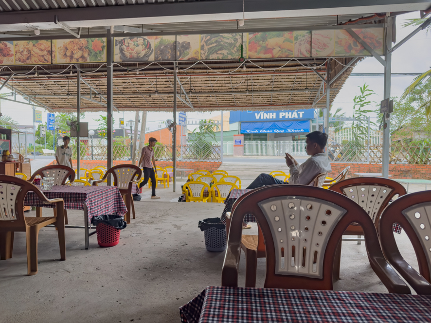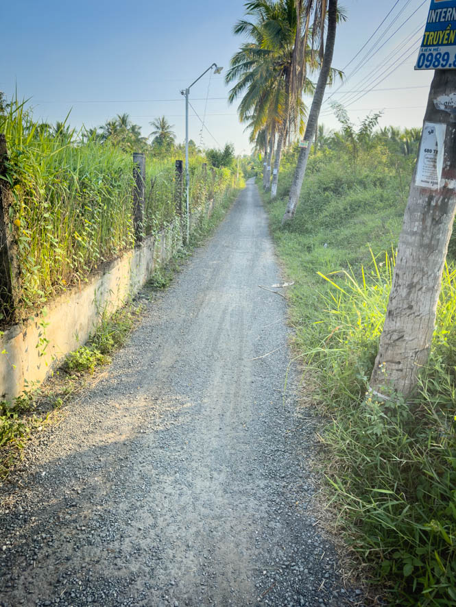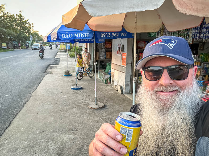 Der Mopedausflug ist ganz lustig, ich suche einfach auf Google Maps einen Ort mit einem Restaurant, wo ich ein Bier trinken kann. Während der circa 50 km langen Anreise bekomme ich viel mit vom Leben auf dem Land in der Gegend von Ben Tre Garden ziehungsweise im Mekong Delta.