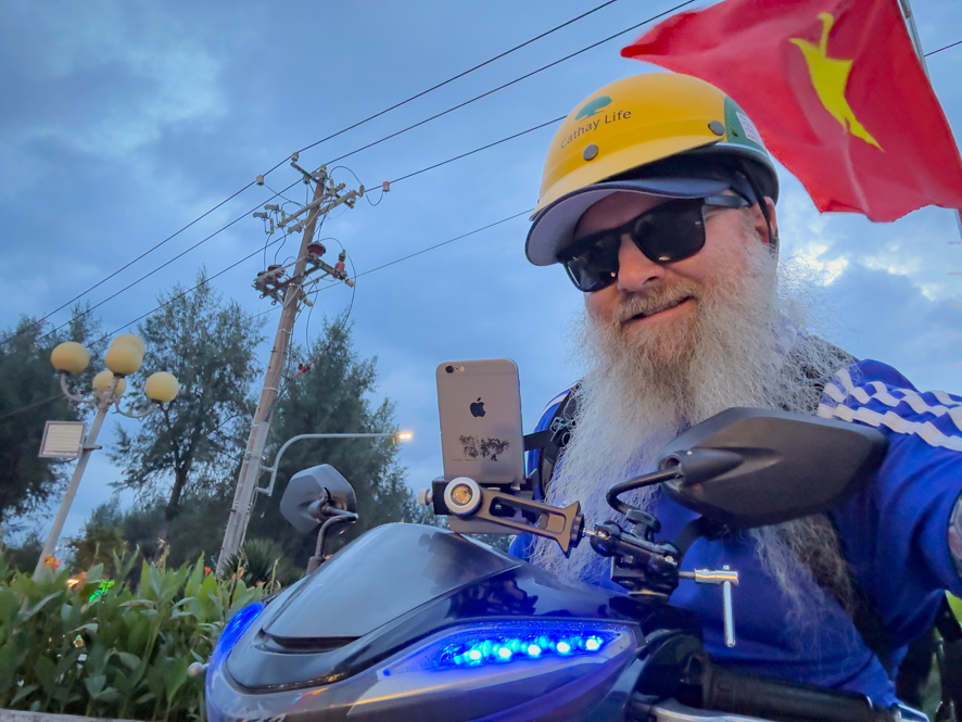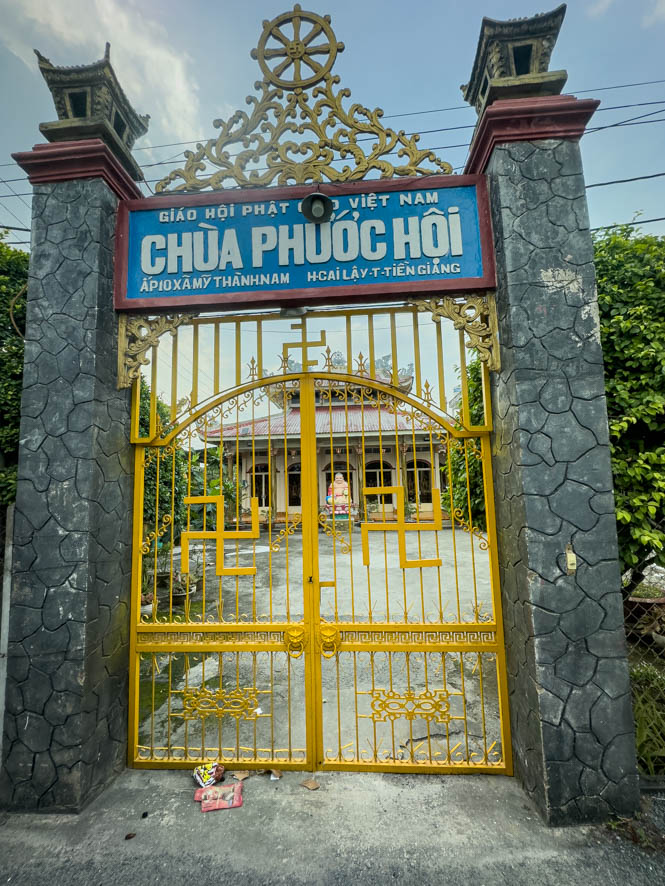 Heute ist eigentlich ein Ruhetag und Blogschreiben angesagt. Aber, wer mich kennt, weiß, dass ich so leicht keine Ruhe geben kann 😅. Deshalb habe ich für 10:00 Uhr wieder ein Moped geordert. Mein Plan ist es, einen Ausflug irgendwohin ins Landesinnere des Mekong Deltas zu machen. Mit dem Moped klappt diesmal alles besser, als beim letzten Mal. Diesmal habe ich sogar eines mit Licht und funktionierende Bremsen. Mehr als das: nach vorne hin am Lenker bin ich sogar mit blauem Licht ausgestattet 😂