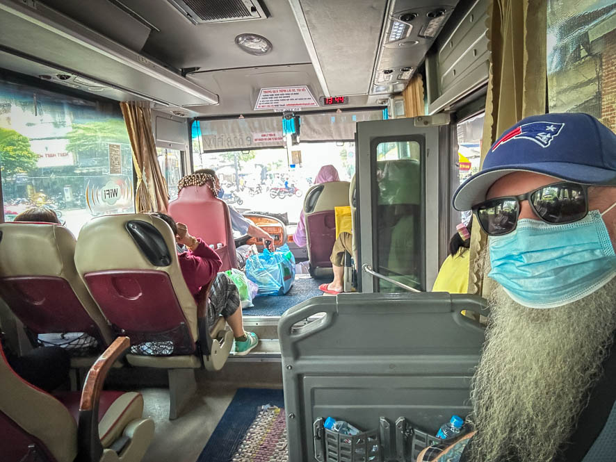 Die Fahrt mit dem Bus lässt mir genügend Zeit, um meine weitere Reise zu planen. Nach Rücksprache mit T an entscheide ich mich für eine Änderung meines ursprünglichen Plans: eigentlich hatte ich vor, noch mit dem Zug entlang der Küste in den Süden fahren, dort einen Zwischenstop in Phan Tiet einzulegen, um dann mit dem Zug weiter ins Mekong Delta zu meiner nächsten Unterkunft zu reisen. Ich musste aber feststellen, dass dieses Vorhaben nicht nur zeitaufwändig wäre, sondern auch gleich viel kostet, wie ein Flug. So buche ich noch im Bus einen Flug von Da Nang nach Saigon inklusive zwei Nächte Aufenthalt in der Großstadt.