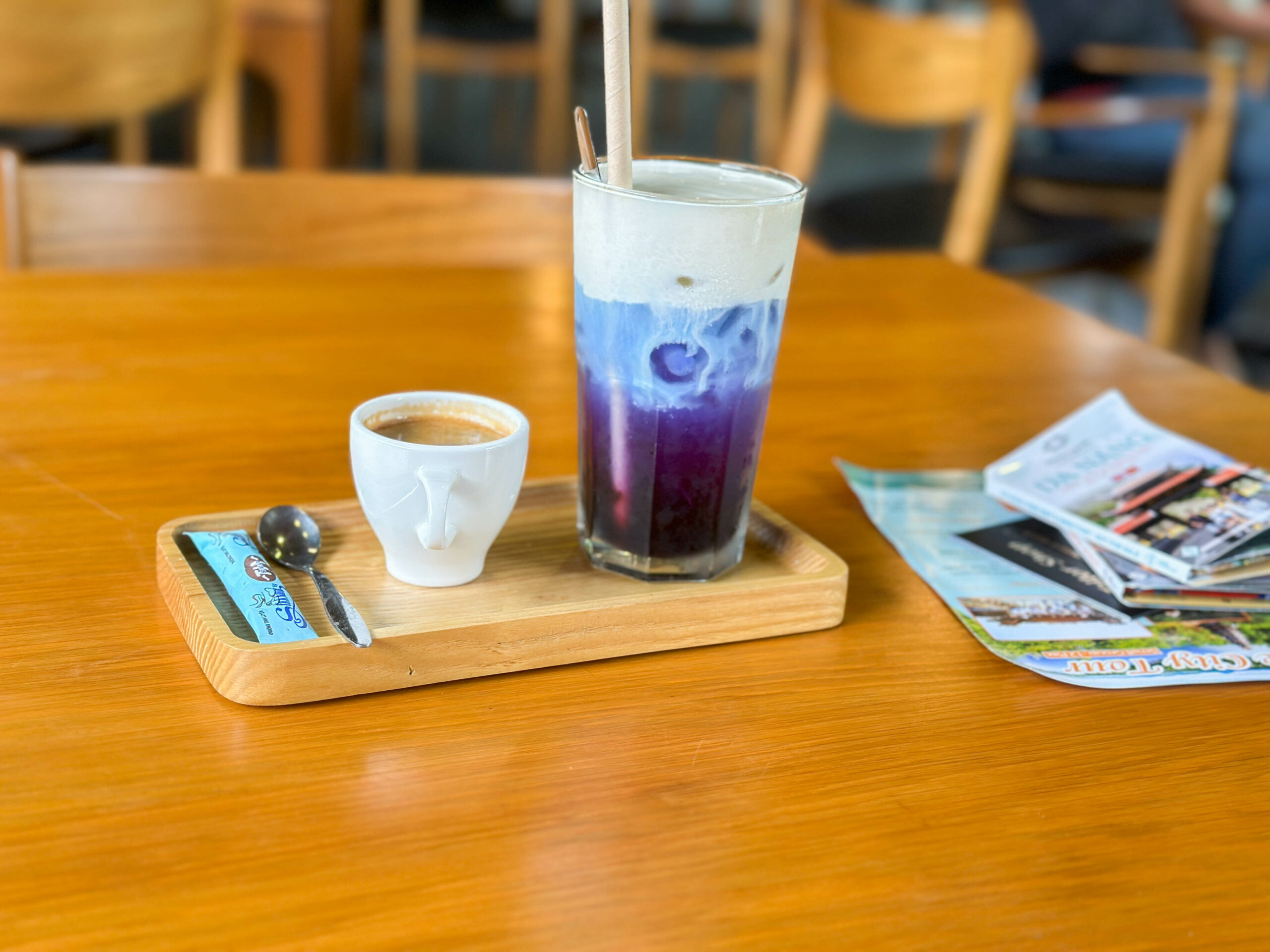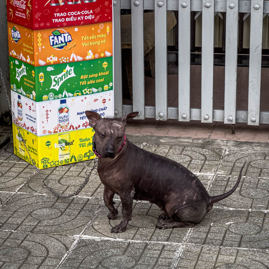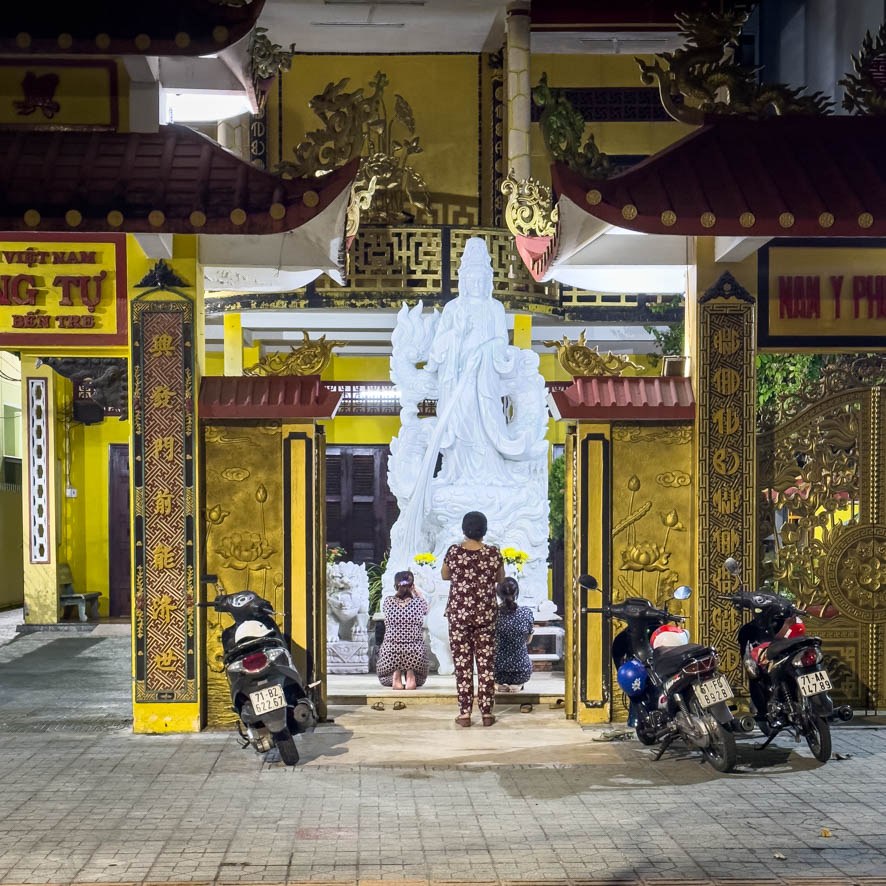 Als ich dann wieder zurück auf Der Hauptstraße war, war ich sehr froh, wieder Menschen zu sehen. Hauptsächlich waren es Mopedfahrer. Es stellte sich sehr schwierig heraus, wieder ein Taxi über Grab zu bekommen – entweder war tatsächlich keines verfügbar, oder kein Fahrer hatte Bock, soweit in die Pampa – ca. 8-10 km vom Ortszentrum entfernt – rauszufahren. Die im kleinen Kiosk anwesende ältere Dame war sehr hilfreich beim bestellen eines lokalen Taxis.