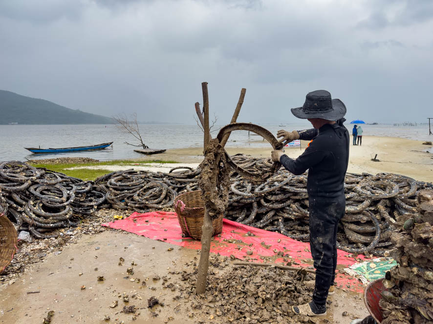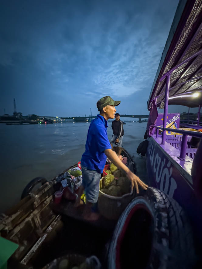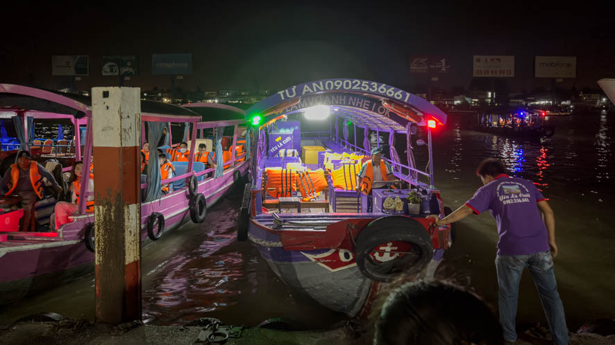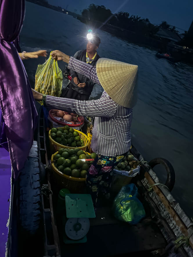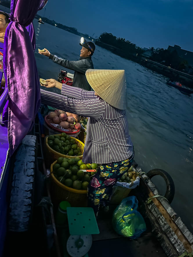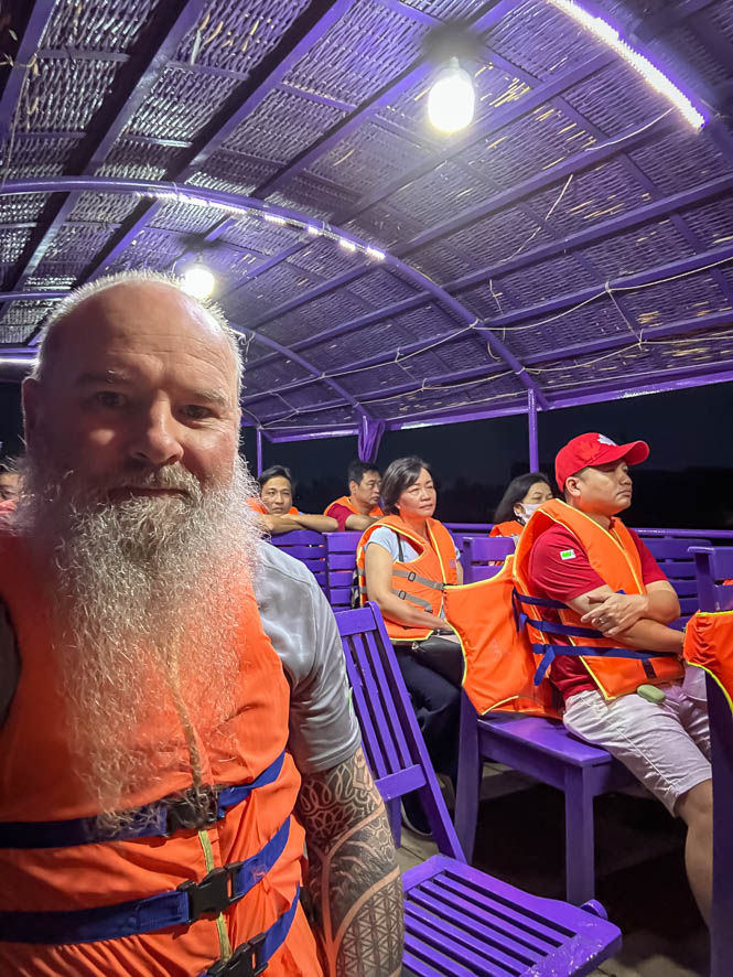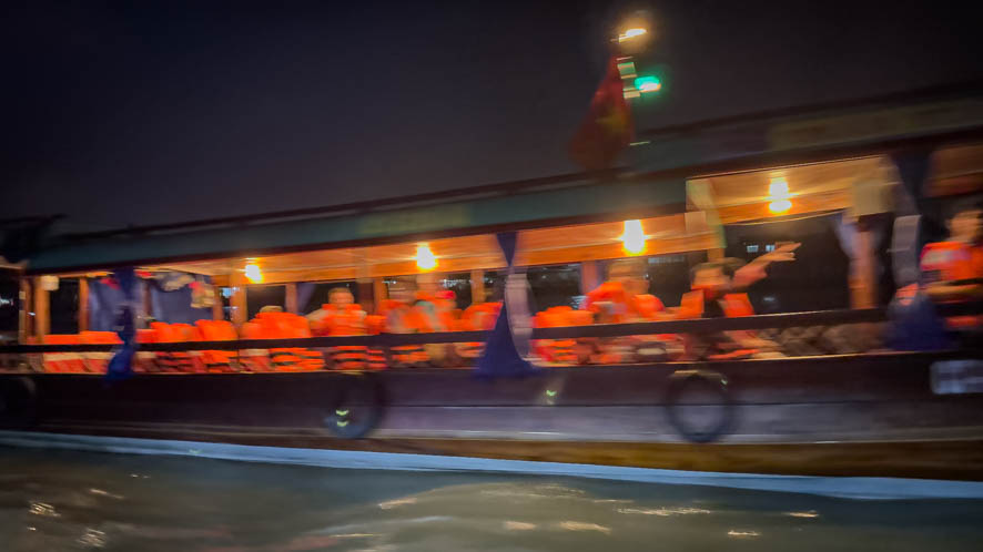Heute ging es um 5:00 Uhr los. Ein netter junger Mopedfahrer hat mich abgeholt und zur Bootsanlegestelle gebracht. Schnell konnte ich feststellen dass ich der einzige Ausländer war in einem Boot mit circa 20 Vietnamesen. Das eigentlich Problematische daran war aber, dass der Tour Guide alle Sehenswürdigkeiten nur auf vietnamesisch 😵💫 erklärt hat. So habe ich so gut wie gar nichts mitbekommen (Die Google Übersetzungsapp war leider so gut wie unbrauchbar).
