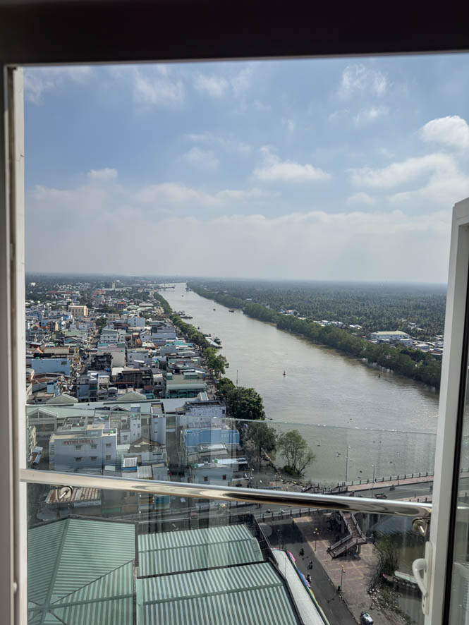 Der nächste Morgen begann mit einer guten Nachricht: mein neues Zimmer war bezugsfertig und so konnte ich bereits um circa 10:00 Uhr nach einem sehr guten und reichhaltigen Frühstück mein neues Zimmer im 15. Stock beziehen. Tatsächlich hat dieses einen Balkon mit Blick auf den Fluss, der Stadt seinen Namen gibt.