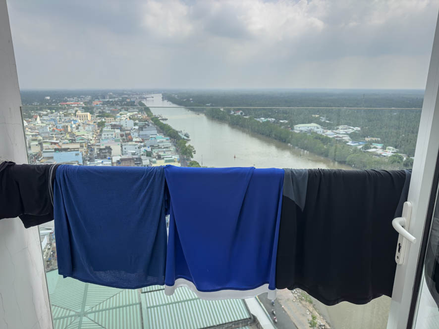 Der Flug mit Bambu Airlines war ausgezeichnet und mit circa 1,5 Stunden auch schnell vorbei. Vom Flughafen in Ho-Chi-Minh City ging es dann in das Apartment Zimmer (Moonlight Appartments) wo ich im neunten Stock einen tollen Ausblick auf Saigon habe.