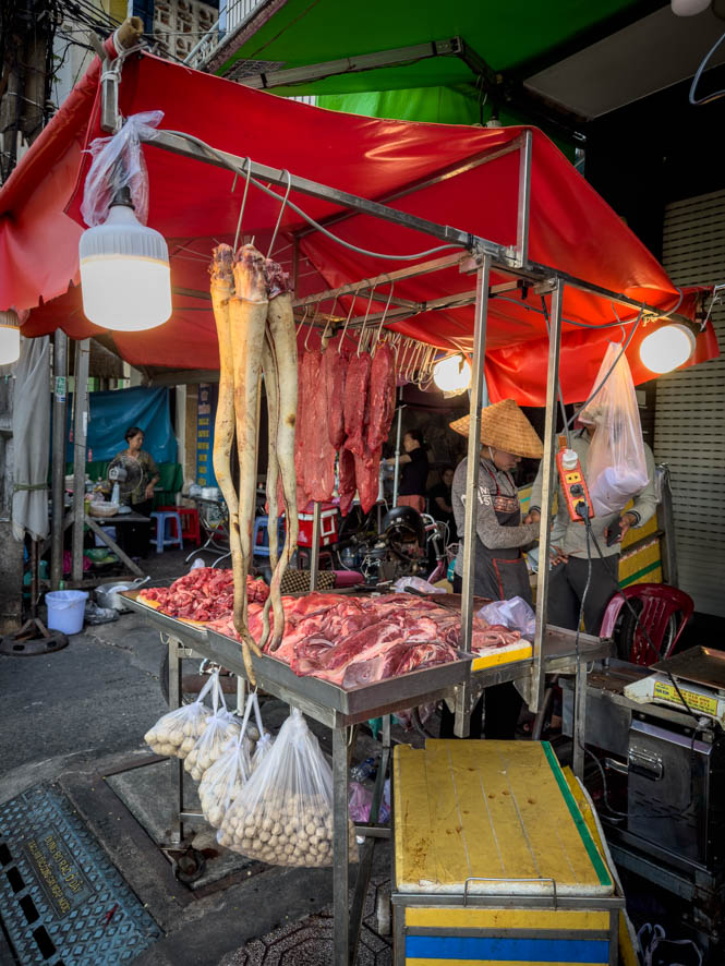 Schon ging es wieder los mit einem Grab-Roller. Dort am Markt hat es, wie es sich so gehört, ziemlich gewuselt. Was mich dann doch überrascht hat, dass die Stände in der Markthalle auf engstem Raum platziert waren. So musste man teilweise auf einem Bein zwischen den Händlern durchstolzieren und dabei aufpassen, dass man nicht das Gewicht verliert.