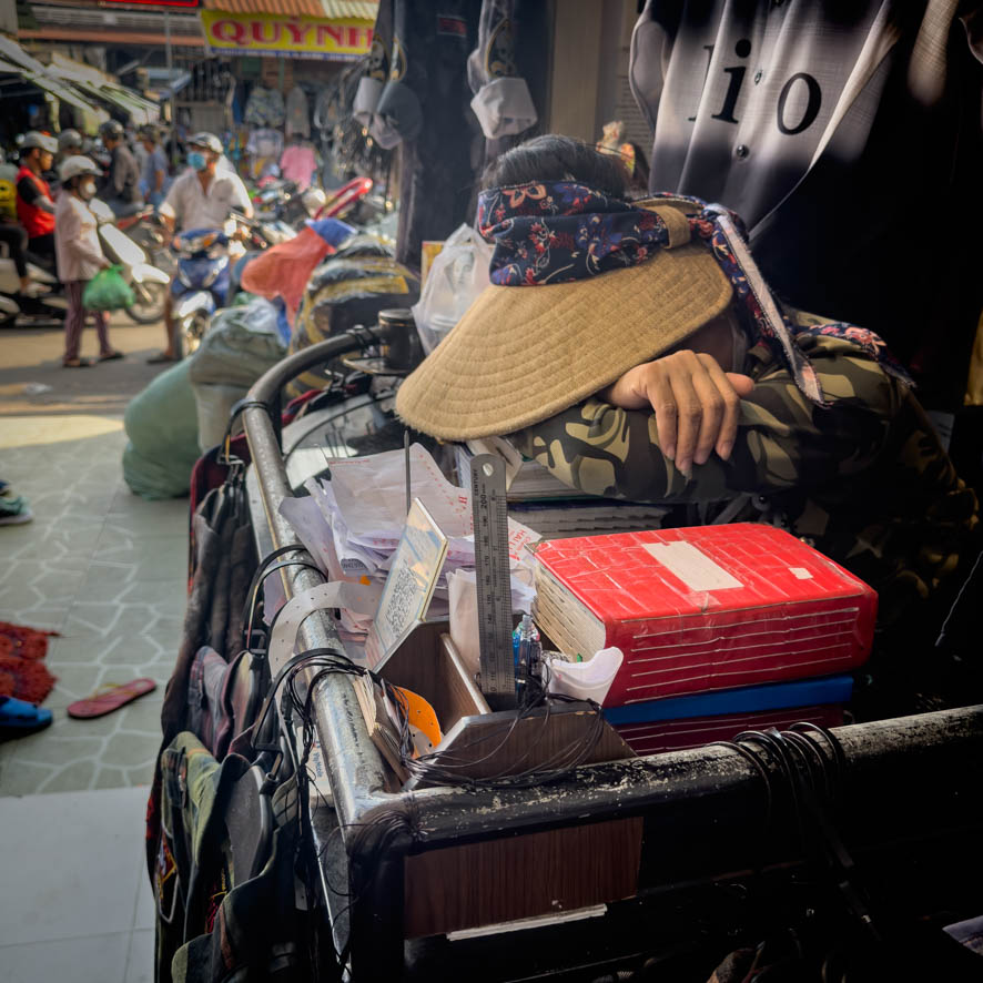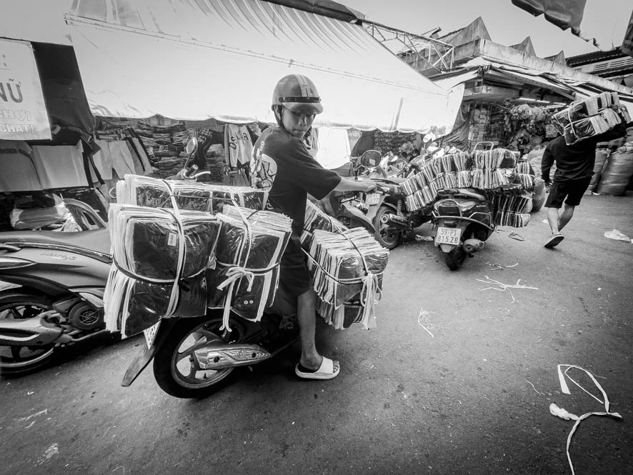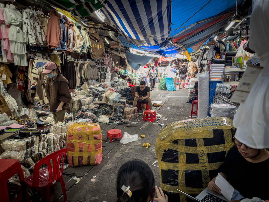 Als Nächstes wollte ich einen der berühmten Märkte von Saigon besuchen, um mir ein weißes Hemd zu besorgen. Der Grund dafür ist, dass ich vorhabe, am Abend einen angesagten Club zu besuchen. Während eines Kaffees hat mir ein einheimischer den Tip gegeben, zum Tan Binh Market zu fahren, dies wäre einer der besten Märkte.