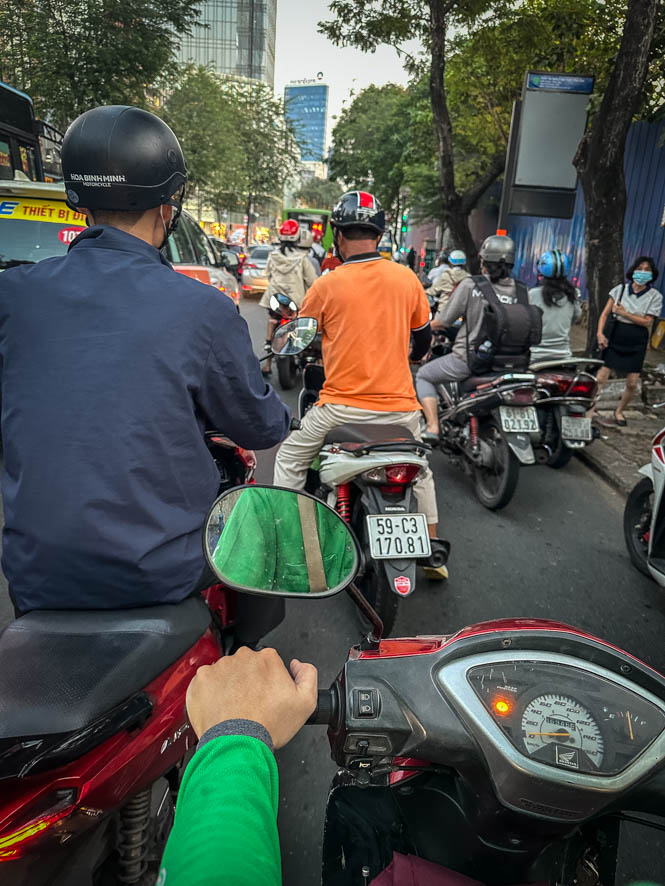 Nun wurde es lustig: ich beschloss, erstmals den Taxi Service Grab zu nutzen. Schließlich gibt es ja auf den Straßen von Saigon gefühlt mehr Motorroller als Menschen.