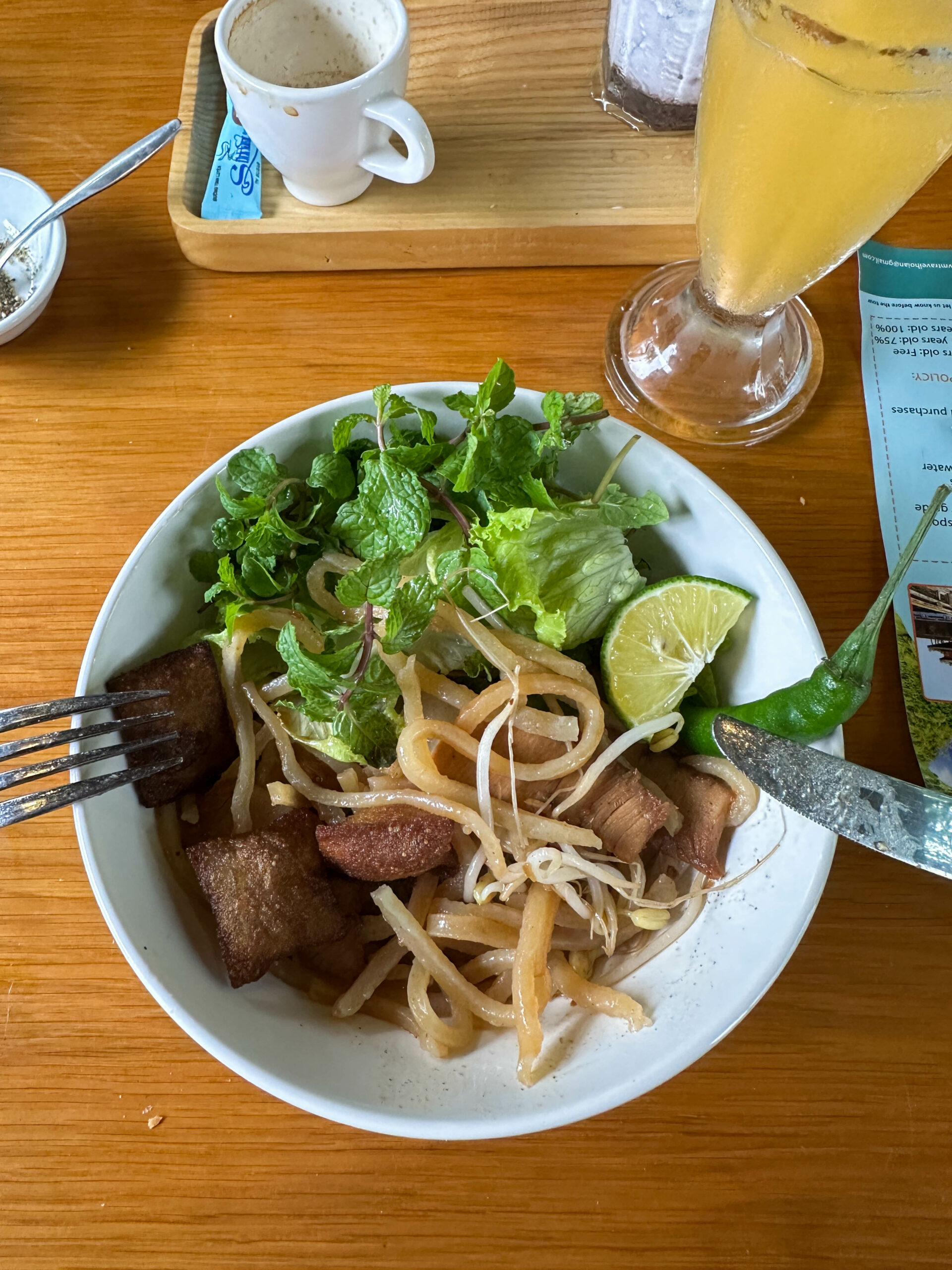Ziemlich müde kam ich um circa 10:00 Uhr wieder in meinem Zimmer an. Ich habe mir noch ein kleines Schläfchen gegönnt und um 13:00 Uhr ausgecheckt. Nach einem Mittagessen, direkt am Fluss, welches gar nicht einmal so schlecht war, hat mich dann das Privat Taxi abgeholt.
