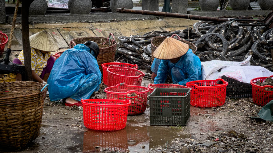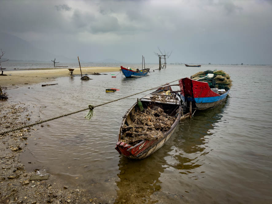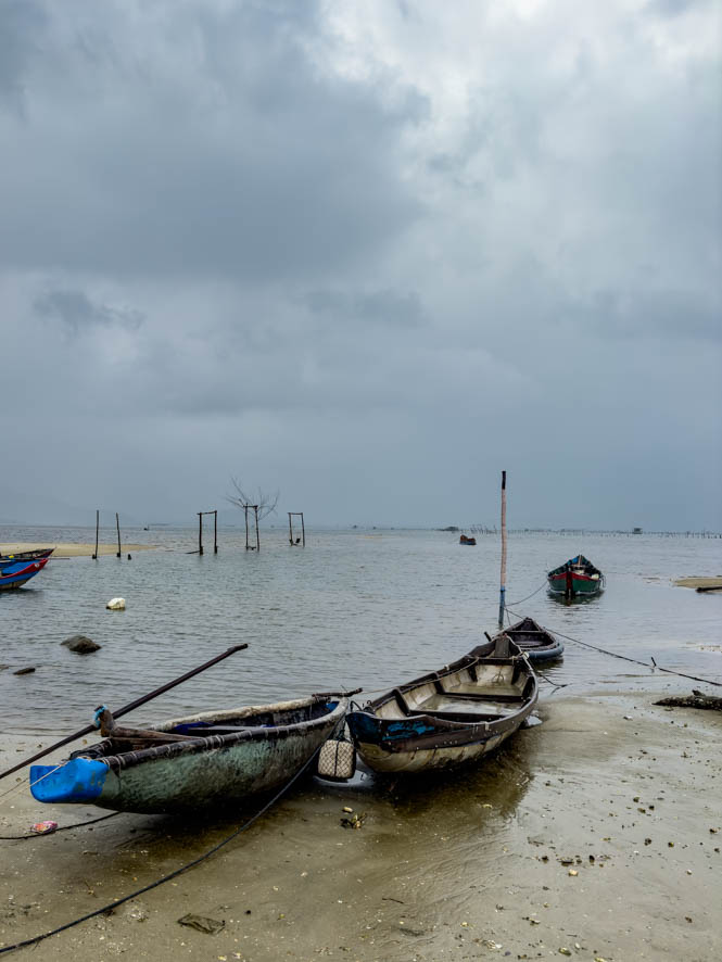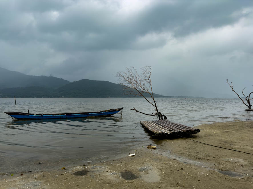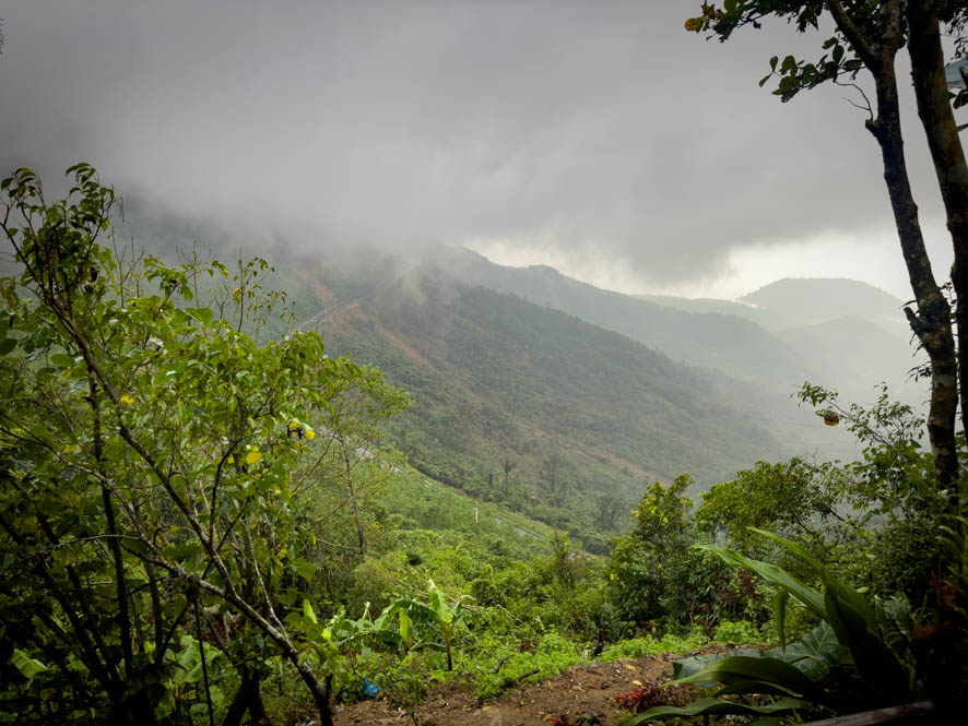 Die Reise führt uns zunächst durch Da Nang und dann hinauf zum berühmten Wolkenpass. Er ist deshalb so bedeutend, weil er als Klimatrennung zwischen Nord- und Südvietnam fungiert. Er wird nicht nur seinen Namen gerecht – es war alles bewölkt – sondern auch auf der ganzen Fahrt wurden wir durch einmal mehr, einmal weniger Regen begleitet. Die Reiseführerin Tian erklärt uns, dass derzeit Regenzeit in diesen Teil des Landes herrscht. Auf meine Frage, ob es eine Jahreszeit gibt in Vietnam, wo es weder im Norden noch im Süden des Landes regnet, erklärt Tian, dass die beste Zeit im Mai und im Juni wäre jedoch sei es sehr heiß in diesen Monaten. Zumindest würde es im ganzen Land kaum regnen.