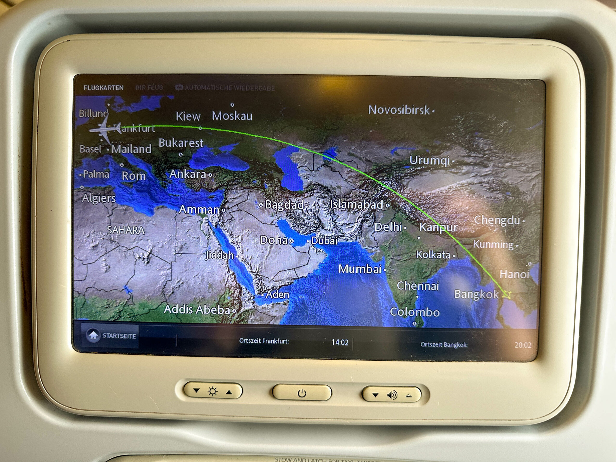 Der heutige Tag wurde hauptsächlich mit Reisen. die 10,5 Stunden Flugzeit von Frankfurt nach Bangkok waren nicht sehr angenehm, mit wenig Schlaf verbunden.